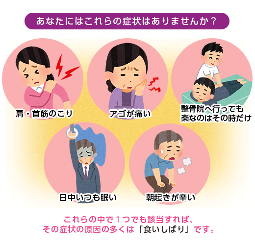 食いしばりは顎周辺の筋肉に緊張をもたらします。