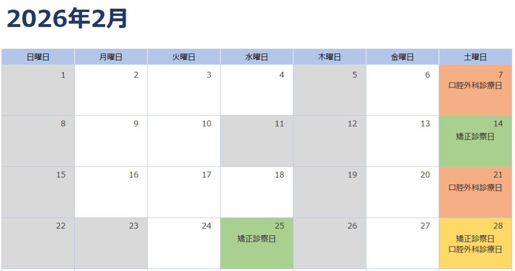 梶川先生による親知らずの抜歯など口腔外科の診察日2/7(土)、2/21(土)、2/28(土)となっております。